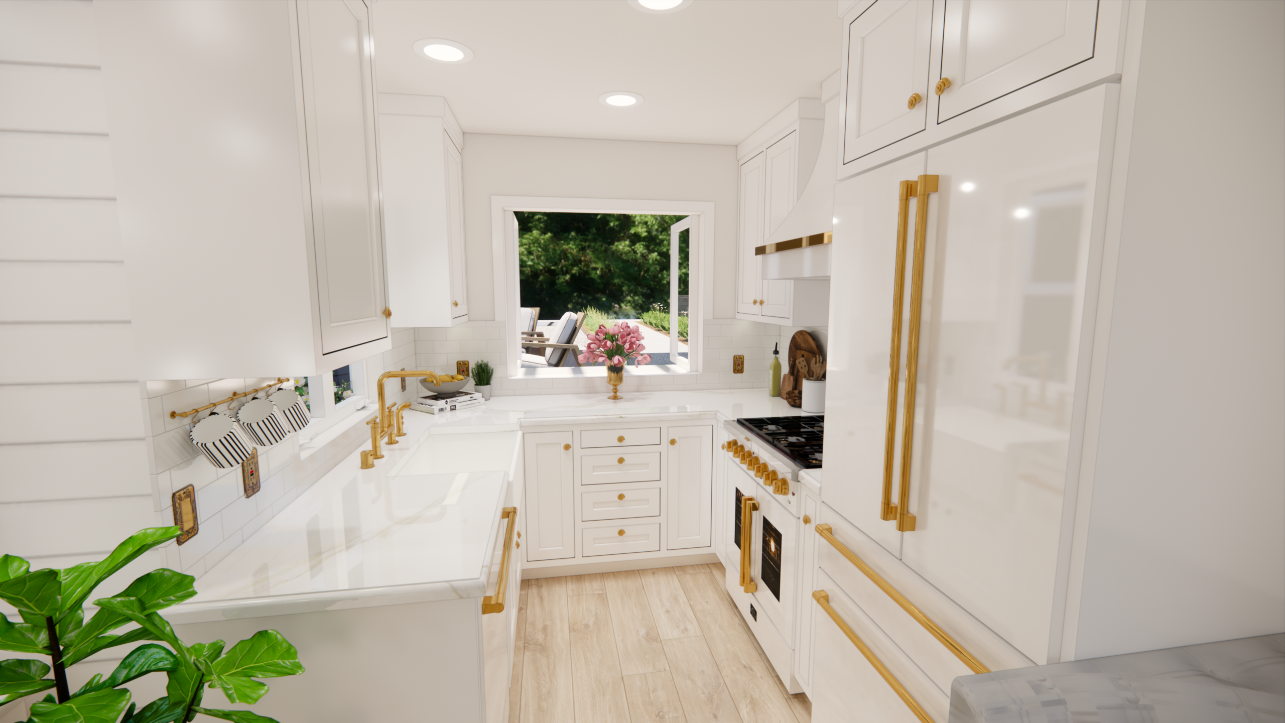 We upgraded the kitchen, master bath and the guest bath. This kitchen has been completely transformed into a stunning representation of the client’s vision for his new home. The details of the design include new cabinets that feel like mink when you touch them and the powerful organic vibe that the marble gives off in its natural beauty. The playful rope light above the island accentuates the marble’s natural veining.